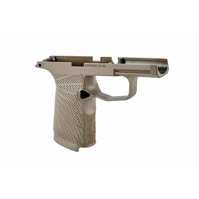 Wilson Combat has reengineered the SIG-SAUER P365/P365 XL grip frame to optimize its practical shooting and concealed carry potential. These all-new molded polymer grip modules will enhance your grip and improve recoil control. The significant improvements in shape, texture, and overall ergonomics will give your P365 the superb feel of an expertly hand sculpted custom gun with a simple grip change. These six new models cover standard and XL P365 frames, with or without a manual safety in black and tan color. Wilson Combat’s fresh look at the P365 grip module incorporates the suggestions of tactical trainers, champion shooters, and firearms experts into the final product that has a look that is unmistakably “Wilson”. It is the most practical, comfortable, and stylish P365 grip available and the ideal choice for concealed carry and defensive handgun use. These are non-serialized, newly manufactured grip modules and are not serial numbered firearms. The Wilson Combat SIG-SAUER P365 Polymer Grip Module features: Upgraded, high-cut 1911-style beavertail grip tang for smooth draws Modified backstrap shape for more natural pointing and enhanced grip and recoil control Undercut front-strap and reshaped, radiused trigger guard for the highest grip possible Improved grip traction and increased grip pattern coverage with Wilson Combat’s exclusive Starburst grip pattern on the sides and aggressive texturing on the front and backstrap Internal Slots for Rod-style Tungsten Weights (Sold separately) Factory SIG-SAUER magazine release, spring, and lock included Compatible with all standard holsters 1.4 oz 6 1/8" long 3 1/8" tall 2" grip (front to back) 1 1/8" grip (side to side) Light Compatability: Streamlight - TLR-6 Tactical Gun Light Streamlight - TLR-7 Sub Ultra-Compact Tactical Gun Light Crimson Trace LTG 772 Lightguard Crimson Trace LTG 422 Sig Sauer Foxtrot365 Surefire XSC Micro-Compact Handgun Light Any light compatible with Sig Factory 365 Modules