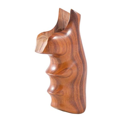 One-piece construction keeps the grip rock-solid on the frame - no shift or wobble to destroy concentration and accuracy. Ergonomic design positions right- or left-hand exactly, shot after shot; plus helps absorb recoil. Smooth and checkered wood grips available in Goncalo Alves (GA) with light tan color and contrasting dark brown grain stripes. Pau Ferro (PF) is dark brown with darker brown contrasting grain stripes.