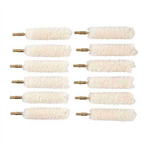 WOOL BORE MOPS, WOOL BORE MOP 44-45 CALIBER 12 PACK fra BROWNELLS er den perfekte løsningen for effektiv rengjøring av løpet på ditt våpen. Denne moppen av jomfru ull holder mye bore-rengjøringsmiddel eller olje, slik at begge ender av løpet blir grundig dekket.