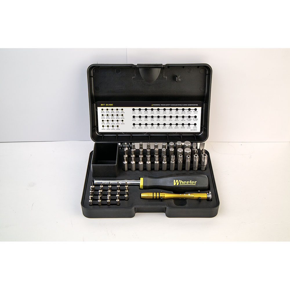 661120412731 Fullfør verktøykassen din med Wheeler 55-dels Hex/Torx Skrutrekker Sett. Dette settet inkluderer alle de vanligste bitene, en ¼” driverhåndtak, en 4mm driverhåndtak og kommer i en praktisk boks for sikker oppbevaring.Fjernet fra programmet av produsenten