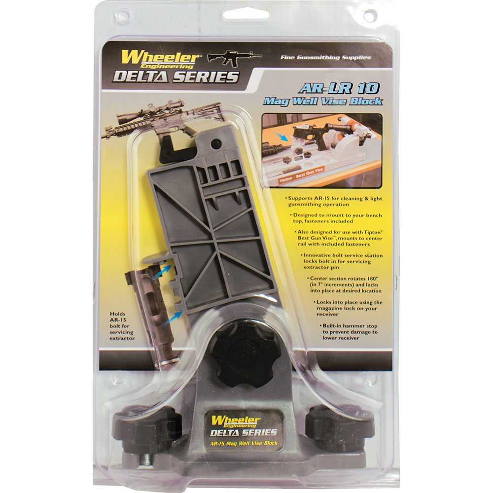 Wheeler Delta Series® AR 308 Variant Mag well Block er det ideelle verktøyet for rengjøring og lett gunsmithing av din AR 308. Designet for bruk med Tipton® Best Gun Vise™, gir denne midtstøtten en stabil base for arbeid i både åpen og lukket stilling.
