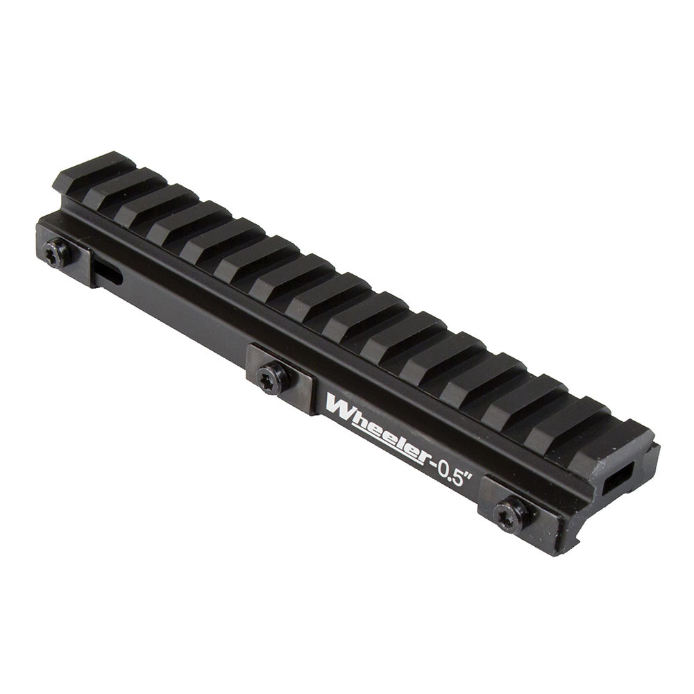 661120565062 Wheeler® forstår behovet for presisjon i dagens avanserte skytesystemer. Å beregne total høyde på optikken over en mottaker-skinne er vanskelig på grunn av varierende spesifikasjoner fra forskjellige ringprodusenter. Behovet for å montere optikk og tilbehør på en nøyaktig høyde over en Picatinny-skinne førte oss til utviklingen av Multi-Height Pic Rails. Å kunne velge en riser som passer til den spesifikke applikasjonen muliggjør perfekt co-witness justering av et sikte og et fremover montert nattkikkert (NVD). Riktig justering av siktet med NVD er avgjørende for å opprettholde det samme nullpunktet med et dag/natt-system.Fjernet fra programmet av produsenten