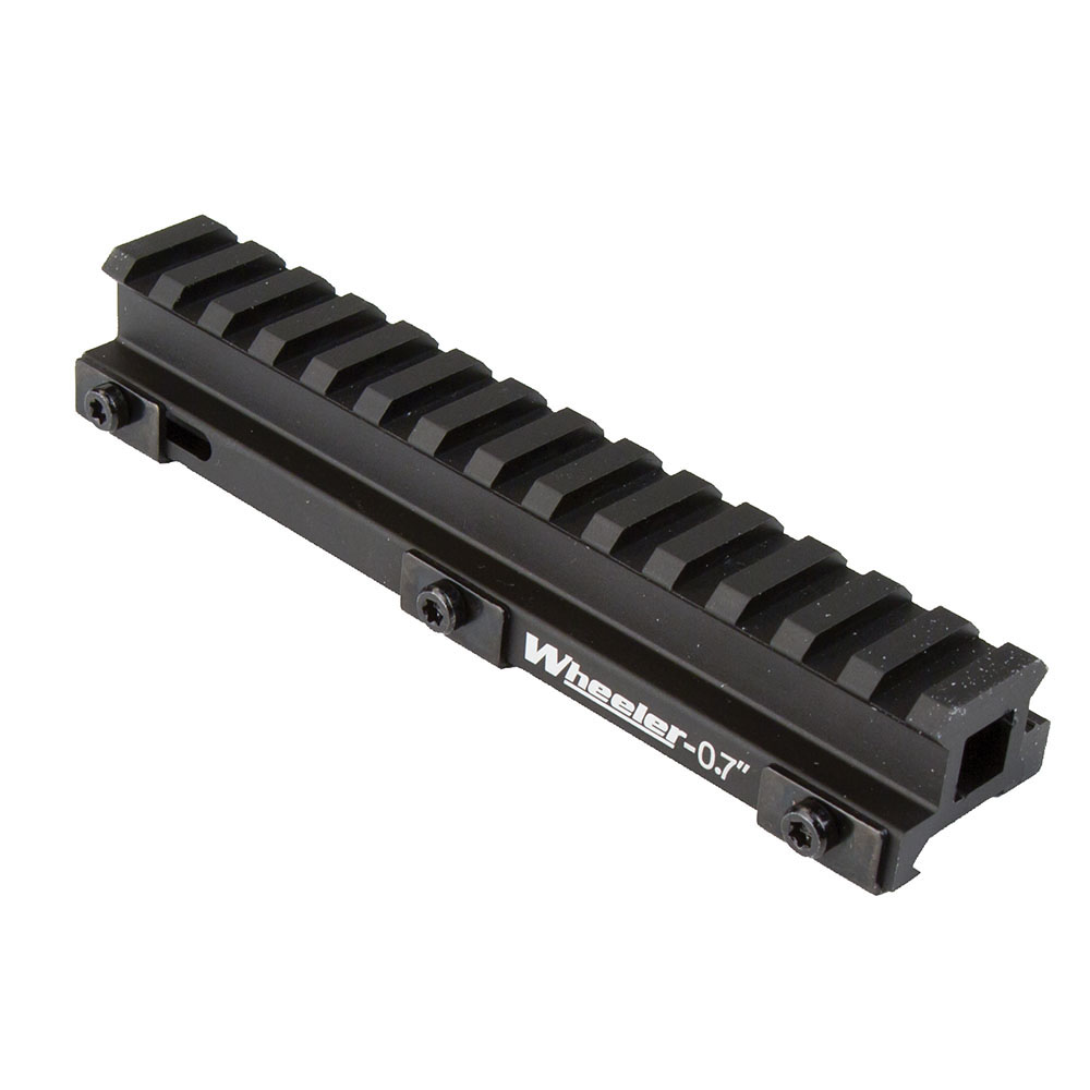 661120565055 Wheeler® forstår behovet for presisjon i dagens avanserte skytesystemer. Å beregne total optisk høyde over en mottaker skinne er vanskelig på grunn av varierende spesifikasjoner fra forskjellige ringprodusenter. Behovet for å montere optikk og tilbehør i en presis høyde over en Picatinny-skinne førte oss til utviklingen av Multi-Height Pic Rails. Å kunne velge en riser som passer til den spesifikke applikasjonen gjør det mulig å oppnå perfekt co-witness justering av et kikkertsikte og et fremover montert nattsynsapparat (NVD). Riktig justering av kikkertsiktet med NVD er avgjørende for å opprettholde det samme nullpunktet med et dag/natt-system.Fjernet fra programmet av produsenten