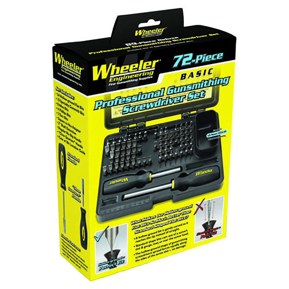 Wheeler Professional Gunsmithing Screwdriver Set, 72 pc, er det ideelle verktøysettet for både amatører og profesjonelle som jobber med våpen. Uansett om du jobber med en Browning® Superposed, en Remington® 700, en Smith & Wesson® revolver, eller en Colt® Single Action, vil du finne at det finnes en bit som passer til hver skrue på ditt våpen.