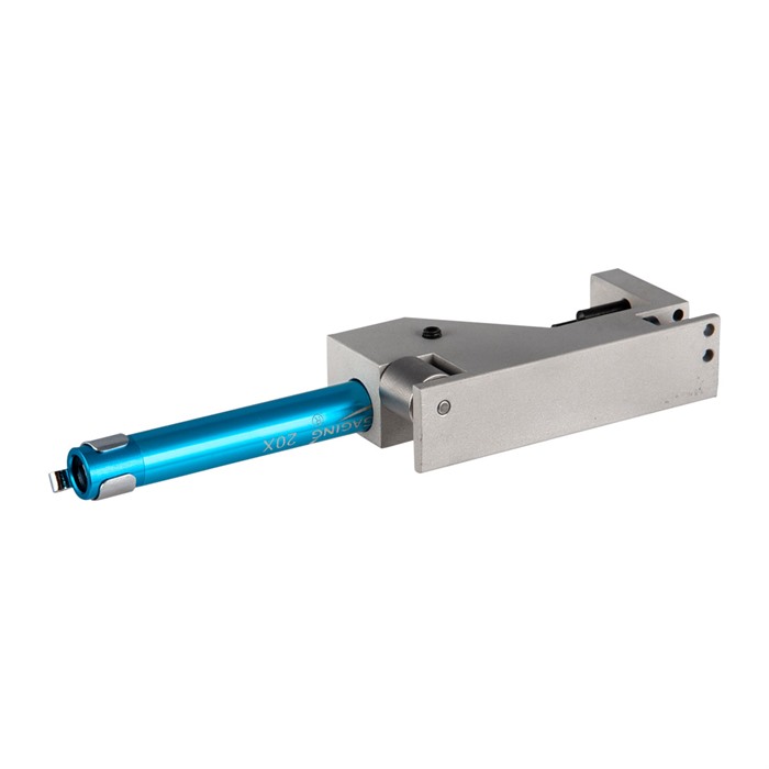 Dette presisjonsmaskinerte verktøyet inkluderer en roller-type sear stoning fixture som gjør det mulig å foreta inkrementelle kutt av både primære og sekundære sear-vinkler. I tillegg har den en 20x forstørrelsesglass for detaljert, nært syn og presise endringer i individuelt hammer/sear-engasjement.