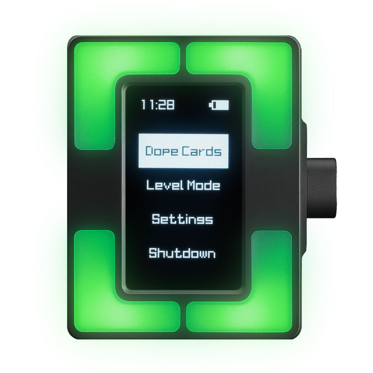 Programmer DOPE-kortet ditt via appen eller direkte på enheten. Vis hver justering under løpet ditt med fjernkontrollen – ingen fumling, ingen distraksjoner.