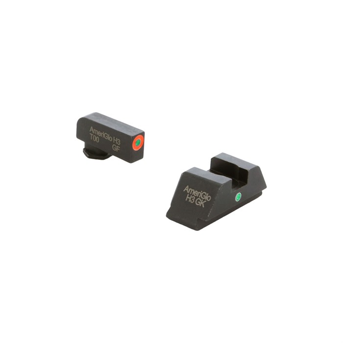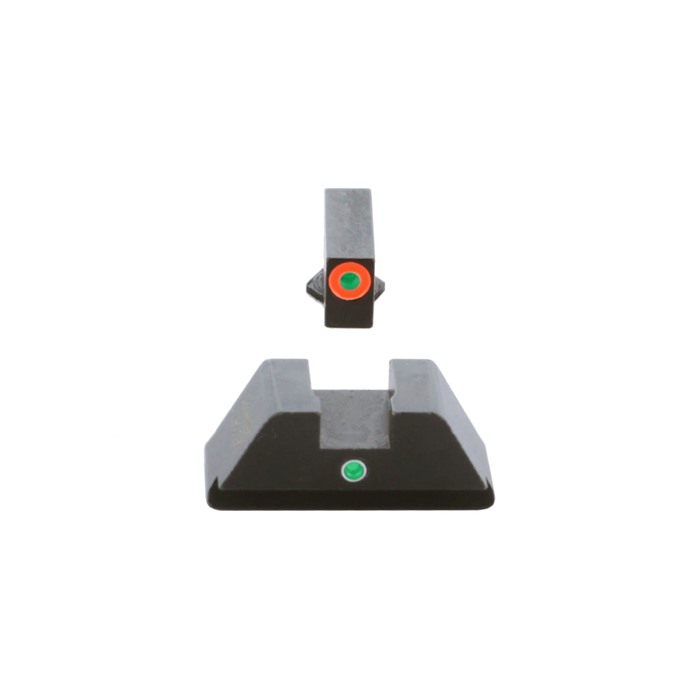 Utilizing a dot-over-dot configuration, AMERIGLO® i-Dot night sights are an excellent design for all shooters. The i-Dot sights provide a quick and easy vertical sight alignment. Fits: Glock® 42,43,43X,48 (Fits MOS) SPECS Fits Make: Glock® Fits Model: 42,43,43X,48 (Fits MOS) Fits MOS Slide: Yes Front Sight Style: Tritium Front Sight Finish: Case Hardened Front Tritium Color: Green Front Outline Color: Orange Front Blade Width: 0.125 in. (3.18mm) Front Blade Height: 0.2 in. (5.08mm) Rear Sight Style: i-Dot Tritium Rear Notch Shape: Square Rear Sight Finish: Case Hardened Rear Tritium Color: Green Rear Blade Height: 0.215 in. (5.46mm) Overall Rear Height: 0.295 in. (7.49mm) Rear Notch Width: 0.165 in. (4.19mm)