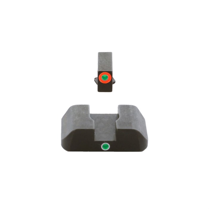 Utilizing a dot-over-dot configuration, AMERIGLO® i-Dot night sights are an excellent design for all shooters. The i-Dot sights provide a quick and easy vertical sight alignment. Fits: Glock® Gen 1-4 9mm/.40/.380, Gen 5 10mm/.45 SPECS Fits Make: Glock® Fits Model: Gen 1-4 9mm/.40/.380, Gen 5 10mm/.45 Fits MOS Slide: No Front Sight Style: Tritium Front Sight FinishCase Hardened Front Tritium Color: Green Front Outline Color: Orange Front Blade Width: 0.140 in. (3.56mm) Front Blade Height: 0.22 in. (5.59mm) Rear Sight Style: i-Dot Tritium Rear Notch Shape: Square Rear Sight Finish: Case Hardened Rear Tritium Color: Green Rear Blade Height: 0.235 in. (5.97mm) Overall Rear Height: 0.315 in. (8mm) Rear Notch Width: 0.18 in. (4.57mm)