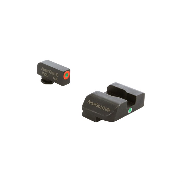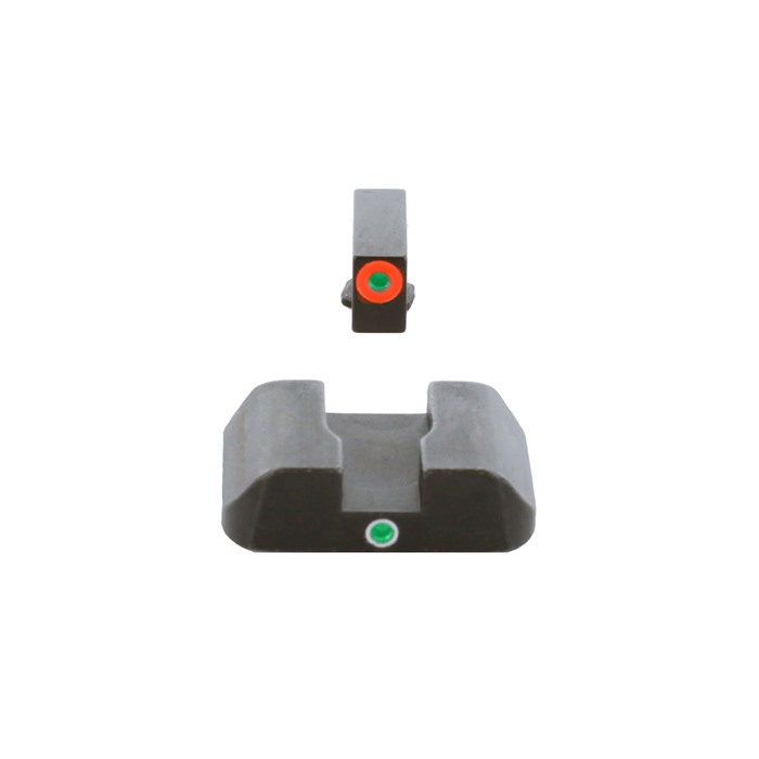 Utilizing a dot-over-dot configuration, AMERIGLO® i-Dot night sights are an excellent design for all shooters. The i-Dot sights provide a quick and easy vertical sight alignment. Fits: Glock® Gen 1-4 10mm/.45/.357 SPECS Fits Make: Glock® Fits Model: Gen 1-4 10mm/.45/.357 Fits MOS Slide; No Front Sight Style: Tritium Front Sight Finish: Case Hardened Front Tritium Color: Green Front Outline Color: Orange Front Blade Width: 0.140 in. (3.56mm) Front Blade Height: 0.2 in. (5.08mm) Rear Sight Style: i-Dot Tritium Rear Notch Shape: Square Rear Sight Finish: Case Hardened Rear Tritium Color: Green Rear Blade Height: 0.235 in. (5.97mm) Overall Rear Height: 0.315 in. (8mm) Rear Notch Width: 0.18 in. (4.57mm)