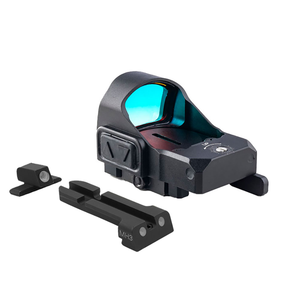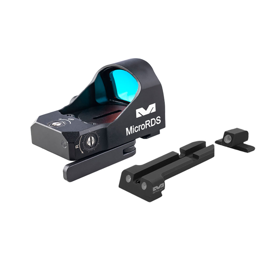 MEPRO microRDS er et kompakt rødpunktsikte som gir rask måletaking, lik en full-size rødpunktsiktemodul for rifler. Med et patentert quick-detach (QD) adapterkit som enkelt monteres ved hjelp av pistolens eksisterende bakre siktespor; ingen boring, tapping eller behov for en våpensmed.